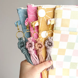 Our new macrame flower keychains!